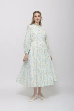 - Long Dress with front button opening at the centre front